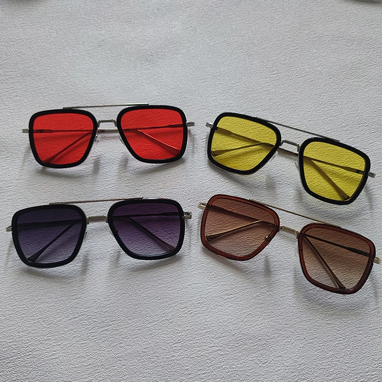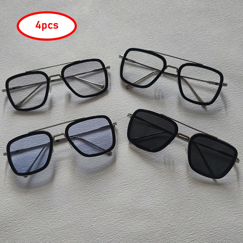 4pcs Square Sunglasses For Men Women Trendy Double Bridges Unisex Sun Glasses Summer Outdoor Shades Eyewear Accessory